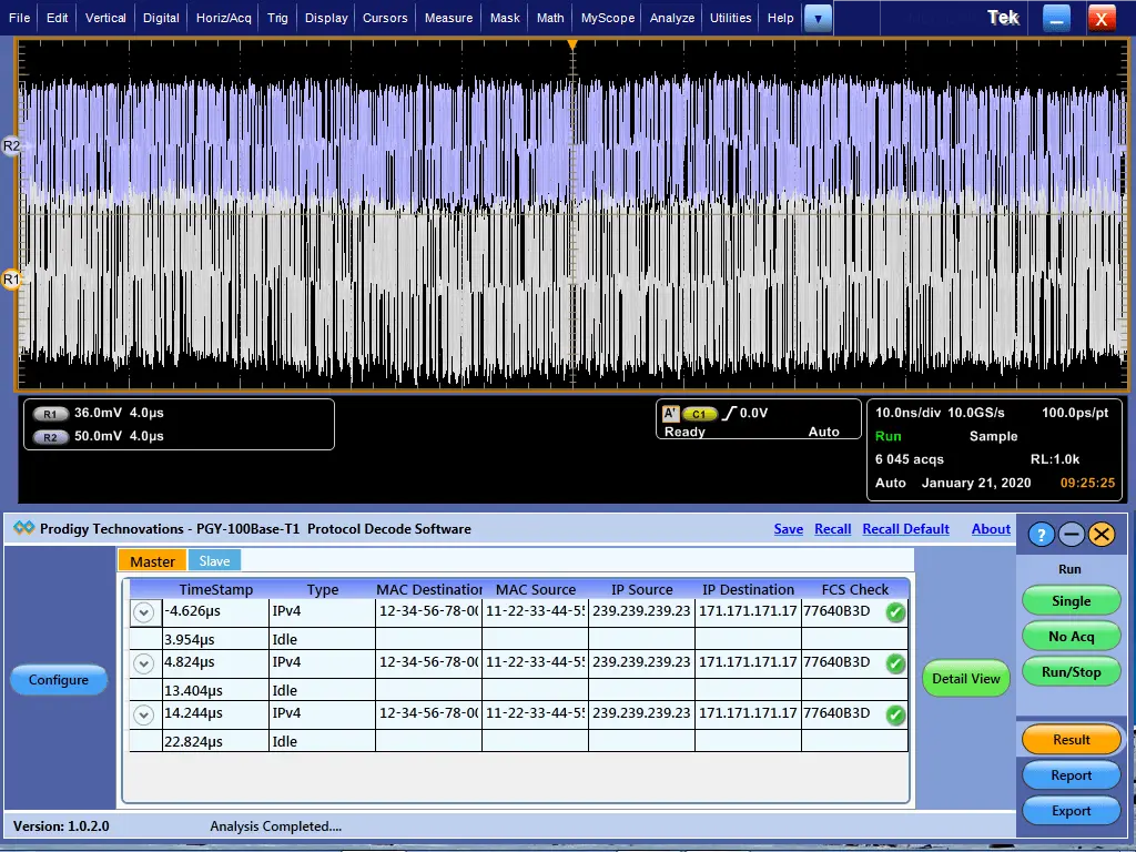 100BASE-T1 Automotive Ethernet Protocol Decode Software offers protocol decoding as specified in the 100BASE-T1 Automotive Ethernet specification. PGY-100BASE-T1 Automotive Ethernet Protocol decode software runs in Tektronix Oscilloscope and provides measurements for protocol decode at the click of a button. This allows engineers to quickly check for 100BASE-T1 Automotive Ethernet compliance and flexibility to debug the failure. In addition to this, engineers can decode the command and response of 100BASE-T1 Automotive Ethernet to debug the communication. PGY-100BASE-T1 Automotive Ethernet takes advantage of the digital channels of MSO and provides the decoding of 100BASE-T1 Automotive Ethernet data lines.