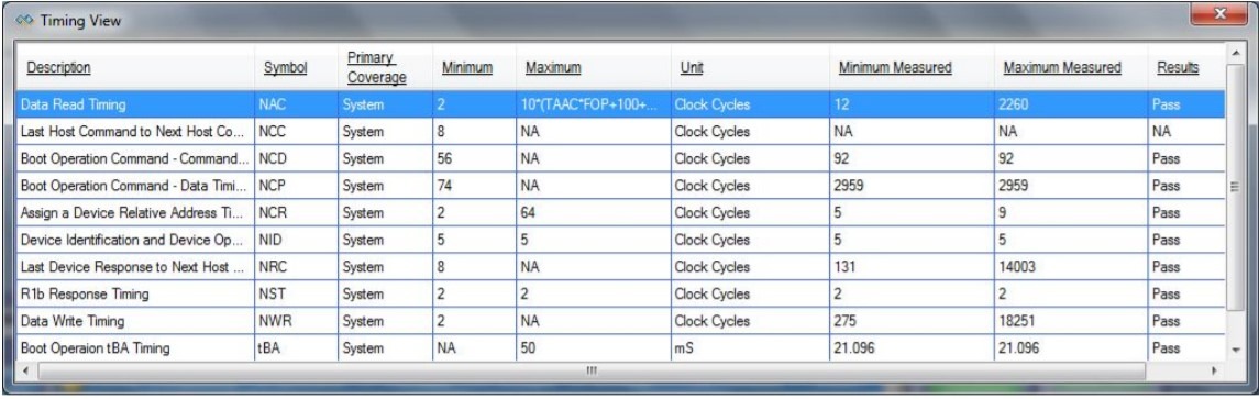 EMMC specifies the minimum and maximum cycles to present between the host and device to ensure interoperability. PGY-MMC-SD analyzes the data for these specifications and offers results.