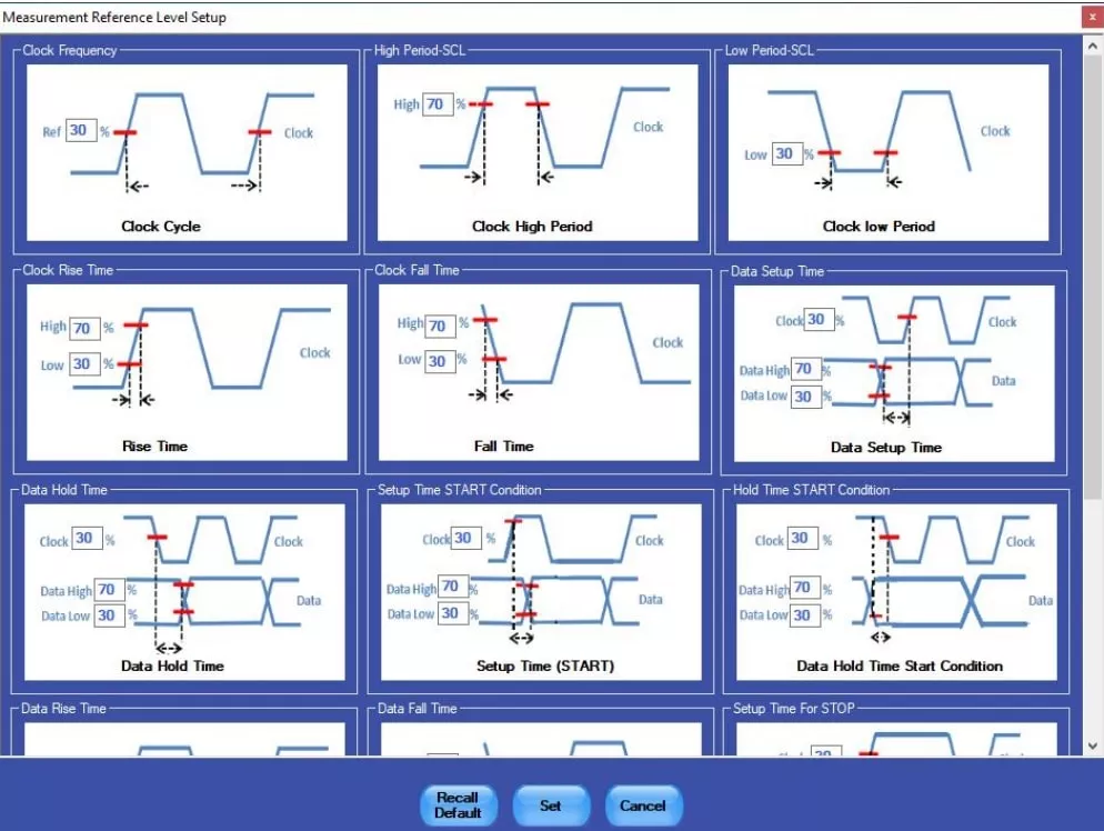 PGY-I3C-EV is not just for standard electrical compliance testing, you can also vary the limits and test your device with custom limits. The intuitive limits and reference level setup allow you to configure the limits and reference levels for your custom testing needs. This enables you to test your device beyond the specification and characterize it.