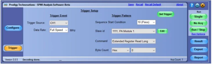 A simple, easy-to-use SPMI protocol-aware trigger feature allows engineers to capture SPMI signals at specific events in the SPMI interface.