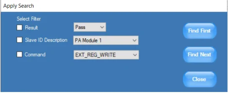 During protocol analysis, users tend to capture a large amount data capture any non-repeatable event. It is also extremely difficult locate the SPMI packet of interest. SPMI Software’s Search filter in is able to quickly locate the required Slave ID or command or Combination of both.