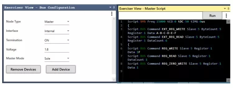 PGY-SPMI-EX-PD supports SPMI traffic generation using GUI and Script. Users can generate simple traffic generation using the GUI to test the DUT. Script-based GUI provides flexibility to emulate the complete expected traffic in the real world including error injections. In this sample, the script user can generate SPMI traffic as below.
